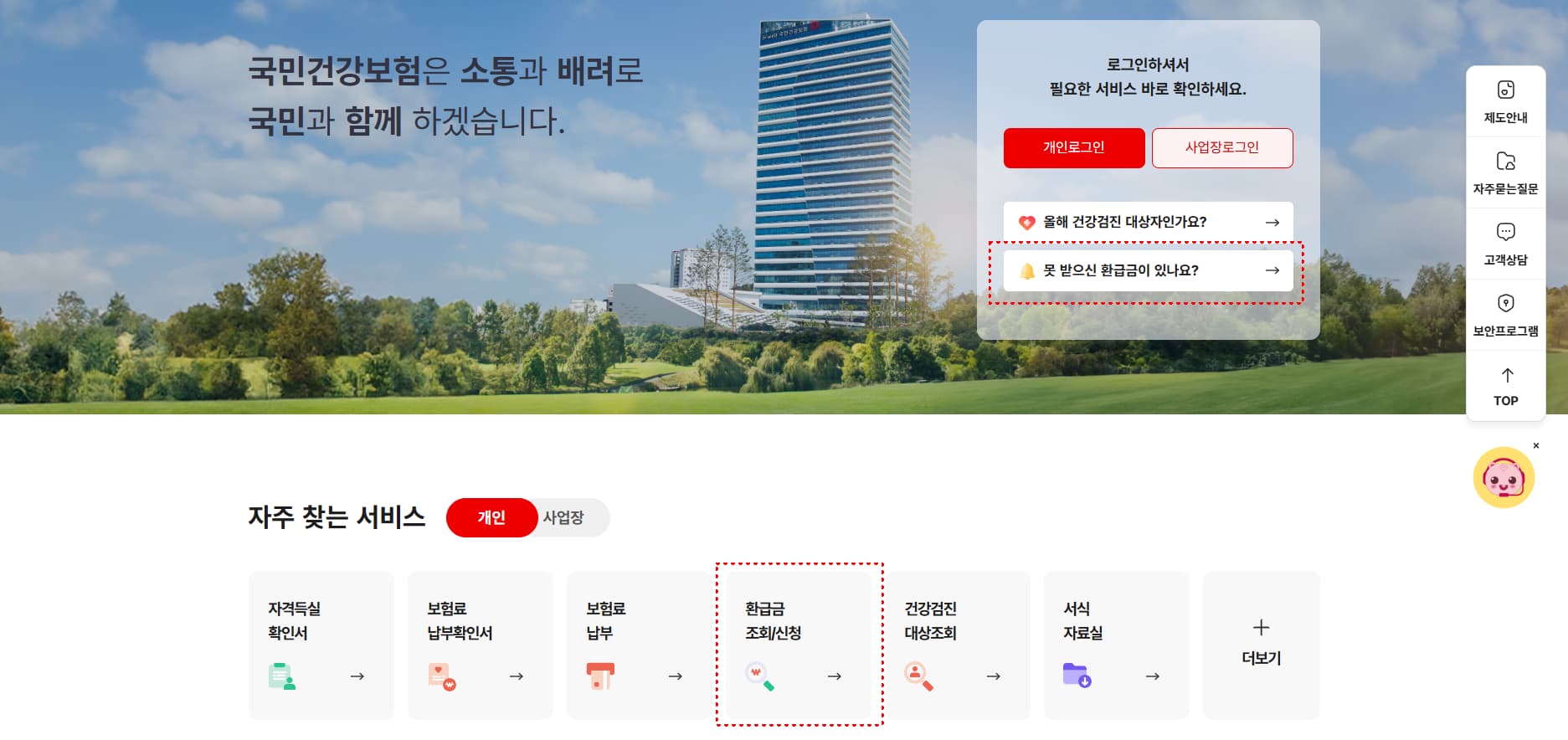 중복납부나 자격 변동이 있었던 경우 특히 건강보험 환급금 조회는 필수입니다.
