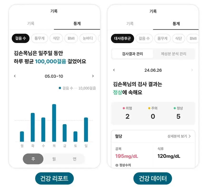 - 건강 데이터는 철저히 보호되며 외부로 제공되지 않음