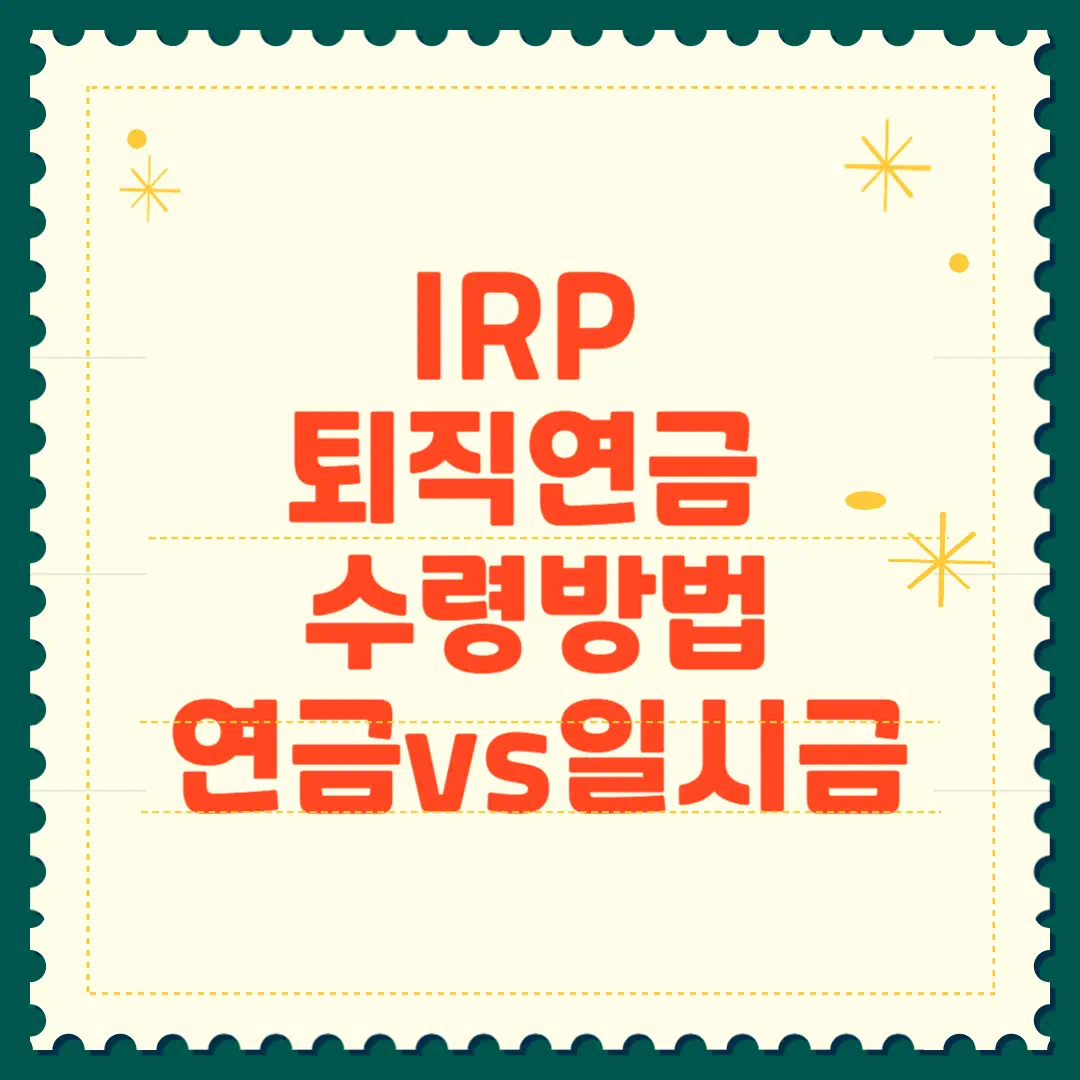 IRP 퇴직연금 수령방법: 연금 수령 vs 일시금 수령